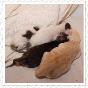 Wir hatten große Sorge alle durch zu kriegen. Schließlich kamen sie ein paar Tage zu früh und waren dadurch viel zu klein. Vor allem um die kleine Abby haben wir uns sehr gesorgt, da sie mit ihren gerade einmal 50g die leichteste war. Wir sind Tag und Nacht (abwechselnd) immer bei ihnen gewesen um schnell eingreifen zu können, falls etwas ist. Ständig hat Bussi sie an ihre Zitzen gedrängt und so manches mal mussten auch wir einem kleinen helfen ein Zitzchen zu finden... Aber jede Minute des bangens und der großen Müdigkeit hat sich gelohnt... Sie haben sich so toll entwickelt und wuseln munter durch ihr "Kinderzimmer".